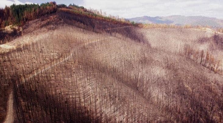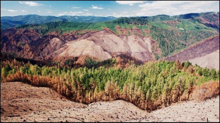 Four years ago, I wrote an article for the Summer 2014 100 Valleys entitled “Fire Is Not The Enemy” analyzing the Douglas Complex fire that burned through a BLM/private industry checkerboard northwest of Glendale, OR in 2013. This was in response to a number of articles in the Roseburg News Review and elsewhere decrying the “destruction” of the forests burned in those fires. Those sympathetic to the timber industry were calling for aggressive snag removal on public lands and for the conversion of old growth forests to tree farms to supposedly prevent such fires in the future. I provided a number of satellite images of forest stands and compared them with fire intensity maps showing this thinking to be exactly the wrong approach to creating and maintaining healthy, fire-resistant forests.