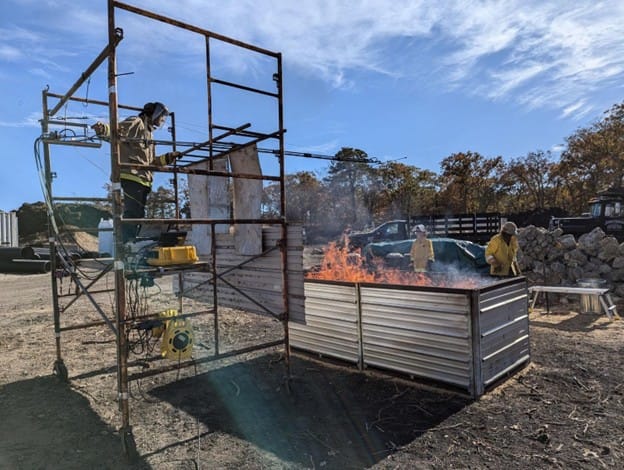 We found that green feedstock resulted in approximately 30-40% of its carbon sequestered in the char, while char from seasoned feedstock sequestered 40-50% of feedstock carbon. Although the 2024 emissions data are still being analyzed, emissions from our first round of tests showed that converting woody biomass to biochar in a flame curtain kiln cuts emissions roughly in half compared to open burn piles.