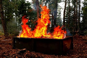 We had a crew of 5-6 in the field for 12 days and treated over 6 acres. We first spent 2 days with a shovel operator using a “rake” to get the slash into piles near the road beforehand. We used 3 kiln styles: 5’ X 5’ Oregon Kilns (designed by Kelpie) (1.5 yards), a ~7′ diameter 4′ high round kiln similar to local biochar pioneer Don Morrison’s design (~5.5 yards), and 6′ X 13′ X 3.25′ rectangular kilns made from salvaged steel “boxes” from old 39″ X 79″ flat plate solar panels (9+ yards).