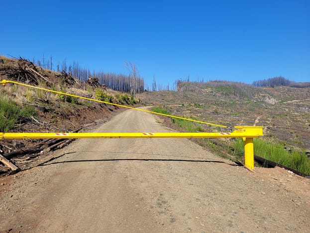 In the Archie Creek Fire area, we have so far been able to access areas and evaluate the activities and projects on public lands. We increasingly began to see more gates in new places, frequently erected on public land. The reason for the gates is not to protect the public from “hazard” trees. Lands behind the gate are already harvested, and then the gate is installed, preventing us from evaluating post-harvest projects. Admittedly, trash dumped from forest roads has become a great problem. Still, those areas are usually close to towns and rural communities.