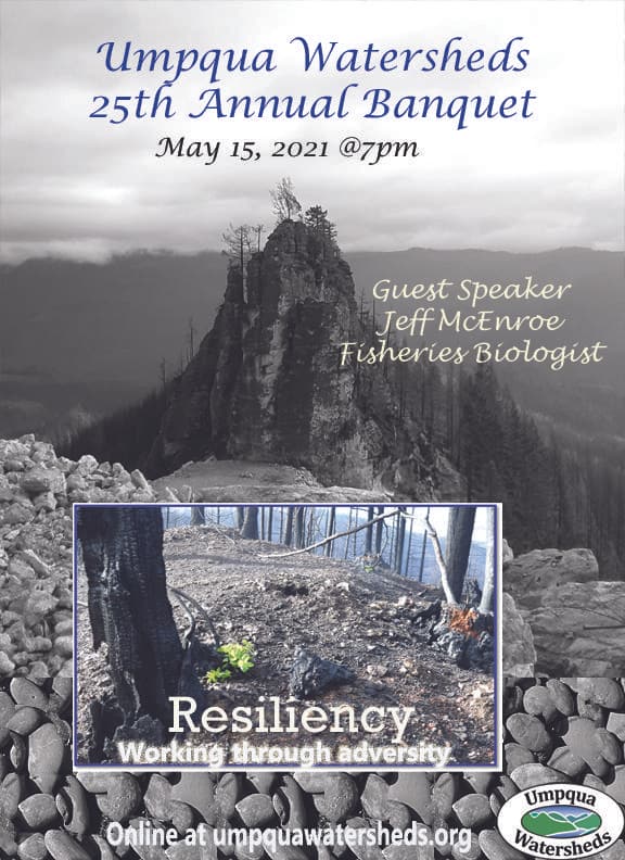 Presentations from our committee chairs, the president, awards, and a virtual keynote speaker, Jeff McEnroe, fisheries biologist for Roseburg Bureau of Land Management speaking on the Archie Creek Fire restoration.