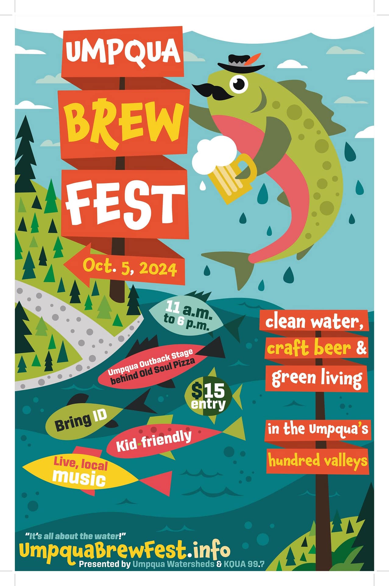 Don’t miss our 13th annual celebration of clean water, craft beer & green living in the Umpqua’s hundred valleys! Umpqua Outback Stage When? Where? Cost? behind Old Soul Pizza 11 a.m. to 6 p.m. $15 entry Live music around the clock! We are looking forward to the 13th Umpqua Brew Fest which will happen during the Roseburg Blocktober Fest event on Saturday, Oct. 5, 11 a.m. to 6 p.m. One of the major goals of our Umpqua Outback Project was to enable us to have the UBF and other major events at our own facility, saving thousands of dollars in expense. Of the funds raised through the UBF, 100 percent will go to support our environmental education program. Sponsorship spots still open We are pleased the Addcox Heating Center will once again be our title sponsor, and that Hamm Dentistry will be our beer wagon sponsor. We are still looking for sponsors, including an Outback Stage sponsor to cover music costs — we’ll have a great line-up of music onstage; our sponsors cover all UBF expenses. Please check out our sponsorship opportunities and share them with businesses who might be interested. Taking it ‘Outback’ We are making progress on the Umpqua Outback Community Space! As expected, it is a slow process and will involve four phases with the goal of having the whole project complete by summer 2025. We are close to putting a roof on the stage. It took us almost four months to have Pacific Power remove the telephone next to the stage, and to put a roof up we need approval from five departments at the Roseburg City Planning Department. We are working with Levi Huffman Engineering to submit digital plans of the stage and then each planning department will do a site review — then we can apply for a building permit. We have raised almost $50,000 in cash and in-kind donations so far, but still need to raise an additional $50,000 for grants we are seeking. All donations are tax-deductible. Please consider donating at the project’s GoFundMe page. Every little bit helps!