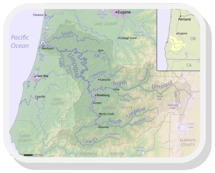 Our level of support reflects just how special the place we call home is to all of us. The Umpqua watershed encompasses 4,219 miles, 87% the size of the state of Connecticut! We live within a couple of hours from the beautiful Cascade Mountains and Crater Lake National Park, and the Pacific Ocean’s pristine beaches. The North, South, and main stem Umpqua, as well their tributaries provide fresh water and bountiful recreation opportunities.